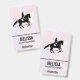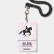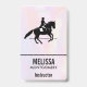 Crachá com uma ilustração em preto e branco de um cavaleiro de dressage. O cavalo e o cavaleiro estão realizando uma pirueta. Clássico e bonito. Definido em um fundo de aquarela em cores pastéis delicadas e suaves.