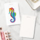 Cavalo-mar poligonal, arco-íris, brilhante, desenhado artisticamente em fundo branco. Tatuagem brilhante.