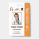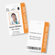 Personalize facilmente este crachá laranja de identificação de foto de funcionário do hospital profissional de estilo azul e moderno com seus detalhes personalizados.