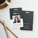 Personalize esses crachás verticais com uma foto e um nome de funcionário, juntamente com duas linhas de texto personalizado adicional para o número de ID do funcionário, função ou título, local ou outros dados chave, adornados com uma ilustração de chave faux aqua foil vintage skeleton. Perfeito para agentes imobiliários, funcionários de empresas de gestão imobiliária ou qualquer pessoa em um campo doméstico. Campo de texto personalizado adicional localizado no verso para informações de retorno ou outros detalhes.