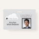 Crachá de ID de Funcionário Horizontal com fundo de cinza leve e foto de funcionário enquadrada.Todos os elementos são alteráveis ou removíveis. A frente dos Elementos para Crachás inclui: logotipo da empresa, slogan da empresa, foto do funcionário, nome do funcionário, departamento do funcionário. A parte traseira do design tem informações da empresa, instruções "se encontradas" para retornar à empresa, e código de barras de segurança, tudo personalizável. Também disponível na orientação vertical. Slot no topo para o pátio. Todos esses elementos podem ser alterados ou excluídos.