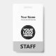 Personalize facilmente este Crachá de nome profissional administrativo personalizado sem fotos, com o Código de Bar de Digitalização e o logotipo de grande empresa. Um simples design de negócios em Cinzas mínimas e cores brancas totalmente personalizáveis nos tamanhos frontal e traseiro, fontes básicas e modernas sans-serif e um visual profissional e claro, perfeito para funcionários de pequenas empresas, chefe, convidados. Estes crachás de identificação de negócios estão disponíveis com ferro-velho, clipe metálico ou com retratável. Não há ordem mínima, mas economize dinheiro e desfrute dos descontos Zazzle por várias ordens!