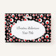 Esse nome ou crachá de identificação tem um padrão circular brilhante abstrato de círculos brancos com círculos vermelhos menores dentro de um fundo preto. Personalize seu nome e informações no oval branco com os modelos.