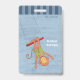 Cute student blue hall pass badge for elementary school featuring a cartoon circus monkey on a trapeze . Personalize it with the teacher's name .