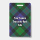 Crachá da crista Clan Blair rodeado por uma correia e fivela sobre fundo tartano. Texto personalizado.