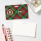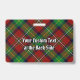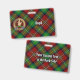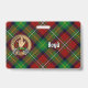 Crachá da crista Clan Boyd rodeado por uma correia e fivela sobre fundo tartano. Texto personalizado de ambos os lados.
