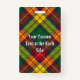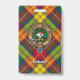 Crachá da crista Clan Buchanan rodeado por uma correia e fivela sobre fundo tartano. Custom Text.