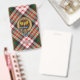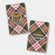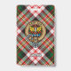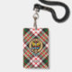 Crachá da crista Clan Carnegie rodeado por uma correia e fivela sobre o fundo do tartan vestido. Custom Text.
