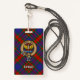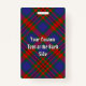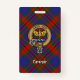 Crachá da crista Clan Carnegie rodeado por uma correia e fivela sobre fundo tartano. Custom Text.