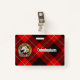 Crachá da crista Clan Cunningham rodeado por uma correia e fivela sobre fundo tartano. Texto personalizado de ambos os lados.