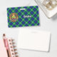 Crachá da crista Clan Douglas rodeado por uma correia e fivela sobre fundo tartano. Texto personalizado de ambos os lados.