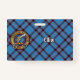 Crachá da crista Clan Elliot rodeado por uma correia e fivela sobre o antigo fundo tartano. Texto personalizado de ambos os lados.