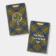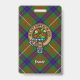 Crachá da crista Clan Fraser cercado por uma correia e fivela sobre a caça ao fundo do tartan. Texto personalizado.