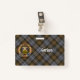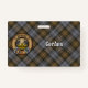 Crachá da crista Clan Gordon rodeado por uma pulseira e fivela sobre fundo tartano de tempo. Texto personalizado de ambos os lados.