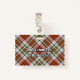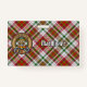 Crachá da crista Clan MacAlister rodeado por uma correia e fivela sobre o fundo do tartan vestido. Texto personalizado de ambos os lados.