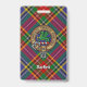 Crachá da crista Clan MacBeth cercado por uma correia e fivela sobre fundo tartano. Texto personalizado.