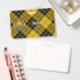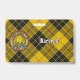Clan MacLeod do crachá da crista Lewis rodeado por uma correia e fivela sobre fundo tartano. Texto personalizado de ambos os lados.