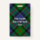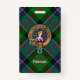 Crachá da crista Clan Paterson cercado por uma correia e fivela sobre fundo tartano. Custom Text.