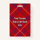 Crachá da crista Rosa de clã rodeado por uma precinta e fivela sobre fundo de tartã. Custom Text.