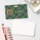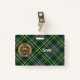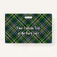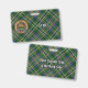 Crachá da crista Clan Scott rodeado por uma correia e fivela sobre fundo de tartã verde. Texto personalizado de ambos os lados.