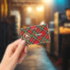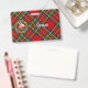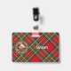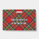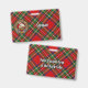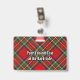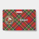Crachá da crista Clan Stewart rodeado por uma correia e fivela sobre fundo de tartã real. Texto personalizado de ambos os lados.