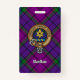 Crachá da crista Clan Wardlaw rodeado por uma correia e fivela sobre fundo tartano. Custom Text.
