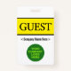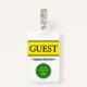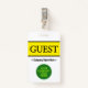 Características deste design do crachá do nostálgico a mensagem "CONVIDADO", e um nome da empresa customizável ou a outra mensagem feita sob encomenda. Um crachá como este poderia talvez ser usado para mostrar que alguém em um negócio ou em um local de trabalho é um convidado ou um visitante autorizado. [~Z0000307]