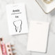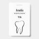 Crachá com uma ilustração de um dente feito com um contorno preto.