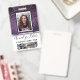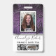Brilho falso violeta roxo e preto brilham deliciosamente por trás de um modelo de foto com moldura preta e branca. Atualize facilmente o nome e o título do cargo profissional para cada crachá de funcionário personalizado. Há também espaço para um logotipo da empresa - exclua para deixar em branco. O verso apresenta mais brilho falso e um modelo de imagem perfeito para códigos de barras de funcionários. Disponível em muitos outros estilos e cores.