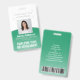 Representa a sua empresa em estilo fornecendo funcionarios com crachás de identificação modernos e profissionais. O logotipo, a foto, o código do bar e todos os textos deste modelo são simples de personalizar. O design verde e branco apresenta um plano de fundo de gradiente ombre com um arco curvo elegante, o logotipo da sua empresa, uma imagem quadrada, o nome e o título do funcionário e UPC / código de barras no verso. Ele pode oferecer organização e segurança para o funcionarios da empresa, ao mesmo tempo que apresenta a marca corporativa com uma aparência na moda clássica.