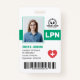 Crie um na moda e crachá de ID profissional para LPN de enfermeiro prático licenciado. Este modelo personalizável apresenta um design limpo e moderno com espaço para uma fotografia, nome, ID do funcionário, localização, título (LPN), data de expiração e um código de barras para maior segurança. Personalize facilmente com o logotipo do hospital ou da clínica, fazer-o como uma solução de identificação perfeita para profissionais de saúde. Esta modelo é ideal para hospitais, clínicas, lares de idosos e outras instalações de saúde. O esquema profissional de cor verde cria uma estética limpa e confiável.