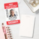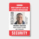 Crachá de ID de segurança personalizado com texto totalmente personalizável. Este modelo editável inclui sua foto de ID, seu nome, cargo, número de ID, nome da empresa, data de emissão, data de expiração, logotipo e um código de barras. Todo o texto pode ser personalizado ou excluído, para que você possa personalizá-lo de acordo com a sua empresa. Um design versátil que se adapta a muitos locais de trabalho e profissões diferentes, incluindo segurança privada, guarda de segurança, oficial de segurança, segurança de loja, guarda-costas pessoal, porteiro oficial, trabalhador de varejo, funcionarios médico e muito mais. Cores impressas: vermelho, preto e branco. Compre a coleção para mais crachás e etiquetas para venda on-line — projetada para o setor de serviços de segurança!