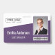 Personalize facilmente este nome de funcionário personalizado roxo e o crachá de fotos com o logotipo da sua própria empresa e o código de barras ou código qr. Disponível com diferentes cores e anexos de fundo. Nenhuma quantidade mínima da ordem.