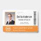 Personalize facilmente este nome de funcionário laranja personalizado e o crachá de fotos com o logotipo da sua própria empresa e o código qr ou o código do bar. Disponível com diferentes cores e anexos de fundo. Nenhuma quantidade mínima da ordem.
