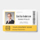 Personalize facilmente este nome de funcionário amarelo personalizado e este crachá fotográfico com o logotipo da sua própria empresa e o código qr ou o código do bar. Disponível com diferentes cores e anexos de fundo. Nenhuma quantidade mínima da ordem.