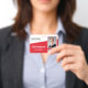 Personalize facilmente este nome de funcionário personalizado vermelho e o crachá de fotos com o logotipo da sua própria empresa e o código qr ou código de barras. Disponível com diferentes cores e anexos de fundo. Nenhuma quantidade mínima da ordem.
