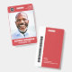 Um crachá moderno e simples que não se distrai dos detalhes importantes. Fácil de ler de longe. Adicione um logotipo personalizado e detalhes da empresa. Adicione o nome do funcionário, a foto e o título profissional. O bar de cor pode ser modificado para corresponder às cores oficiais da empresa. No verso, adicione mais informações, como endereço de devolução e número de ID do funcionário. Perfeito para logotipos redondos.