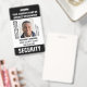 Crachá de ID de segurança personalizado com texto totalmente personalizável. Este modelo editável inclui sua foto de ID, seu nome, cargo, número de ID, nome da empresa, data de emissão, data de expiração, logotipo e um código de barras. Todo o texto pode ser personalizado ou excluído, para que você possa personalizá-lo de acordo com a sua empresa. Um design versátil que se adapta a muitos locais de trabalho e profissões diferentes, incluindo segurança privada, guarda de segurança, oficial de segurança, segurança de loja, guarda-costas pessoal, porteiro oficial, trabalhador de varejo, funcionarios médico e muito mais. Cores impressas: preto e branco. Compre a coleção para mais crachás e etiquetas para venda on-line — projetada para o setor de serviços de segurança!