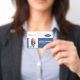Um crachá moderno e simples que não se distrai dos detalhes importantes. É fácil ler de longe. Adicione um logotipo personalizado e detalhes da empresa. Adicione o nome do funcionário, a foto e o título profissional. O bar de cor pode ser modificado para corresponder às cores oficiais da empresa. No verso, adicione mais informações, como endereço de devolução e número de ID do funcionário.