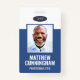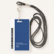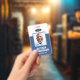 Um crachá moderno e simples que não se distrai dos detalhes importantes. Fácil de ler de longe. Adicione um logotipo personalizado e detalhes da empresa. Adicione o nome do funcionário, a foto e o título profissional. O bar de cor pode ser modificado para corresponder às cores oficiais da empresa. No verso, adicione mais informações, como endereço de devolução e número de ID do funcionário. Perfeito para logotipos em forma de oval.