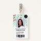 Um moderno, profissional e bonito castor de aquarela e padrão de flores, um médico pediatra ou um crachá de foto de enfermeira com logotipo e código de barras.