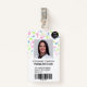 Um médico pediátrico, moderno e profissional, de dinossauros aquosos, ou crachá de foto de enfermeira com logotipo e código de barras.