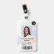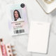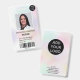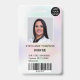 Um crachá de identificação de enfermeira holográfica nacarada pastel moderno e profissional com logotipo e código de barras.