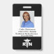 Crachá de Identificação de Enfermeira(o) Registrada(o). Adicione sua foto, nome, localização da empresa e código de leitura a este Crachá de ID de Enfermeira(o).