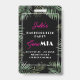 Desaparecida em South Beach! Celebre o fim de semana da despedida de solteira em Miami, Flórida, com pulseiras de código QR para Comprar uma Bebida para a Noiva. Adicione seu próprio código QR. Projetado com folhas de palmeira verdes e fontes art déco, este design transmite grandes vibrações de Miami.