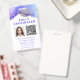 Ótimo para qualquer empresa ou pessoa autônoma. Edite facilmente este modelo para carregar seu próprio logotipo, foto de ID, código QR de vacina e informações pessoais. Além disso, informações de 'por favor, devolva' no verso. Arte abstrata única com cores de aquarela em roxo, rosa e dourado. Crachá de código QR de foto de ID de vacinação personalizado.