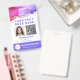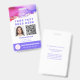 Excelente para qualquer trabalhador que presta cuidados, empresa de cuidados no domicílio ou trabalhador independente. Edite facilmente este modelo para carregar sua própria foto de ID, código QR e informações pessoais. E mais "gentilmente devolva" informações no verso. Arte abstrato única com tons de aquarela em rosa, roxo e ouro. Crachá de Código QR de Vacinação de ID de Foto de Funcionário Personalizado.