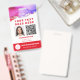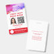 Excelente para qualquer trabalhador que presta cuidados, empresa de cuidados no domicílio ou trabalhador independente. Edite facilmente esta modelo para carregar a sua própria foto de ID, o seu Código QR de Vacina e informações pessoais. E mais "gentilmente devolva" informações no verso. Arte abstrato única com tons de aquarela em rosa, roxo e ouro. Vacinação para ID de Foto do funcionarios Código QR Crachá Vermelho.
