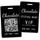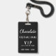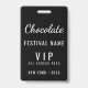 Crachá de Código QR do Evento Personalizado do Festival de Chocolate VIP com um design elegante preto e branco. Ideal para equipe do festival, voluntários e equipe que precisam de identificação clara em eventos de chocolate, festivais de comida e feiras comerciais. Personalizado para uso profissional em eventos.