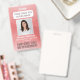 Represente seu negócio com estilo fornecendo ao seu pessoal crachás de identificação fotográficos modernos e profissionais. O logotipo, a foto, o código QR e toda a redação neste modelo são simples de personalizar. Para criar seu próprio código QR usando o gerador, basta digitar a URL do site no modelo. O design também apresenta um fundo gradiente ombre rosa com arcos curvos únicos, o logotipo da sua empresa, uma imagem quadrada e o nome e cargo do funcionário. É adequado como uma ferramenta de marketing promocional ou como um passe de acesso para um evento, como uma conferência, show, festival ou festa vip. Pode fornecer organização e segurança para os funcionários da empresa, ao mesmo tempo em que apresenta a marca corporativa com uma aparência elegante e clássica.
